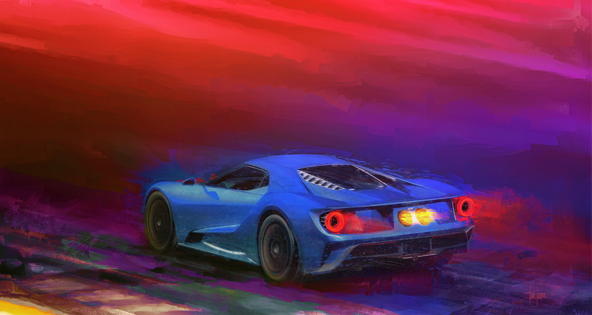 The next generation of the famed GT40 is on the horizon. Ford is back, and muscle cars are back. This GT prototype marks the desire of Ford to return to their glory days of the 1960's when they dominated Ferrari at Le Mans. 300 limited edition prints, hand signed and numbered by the artist. 24"x 45" on museum quality canvas.