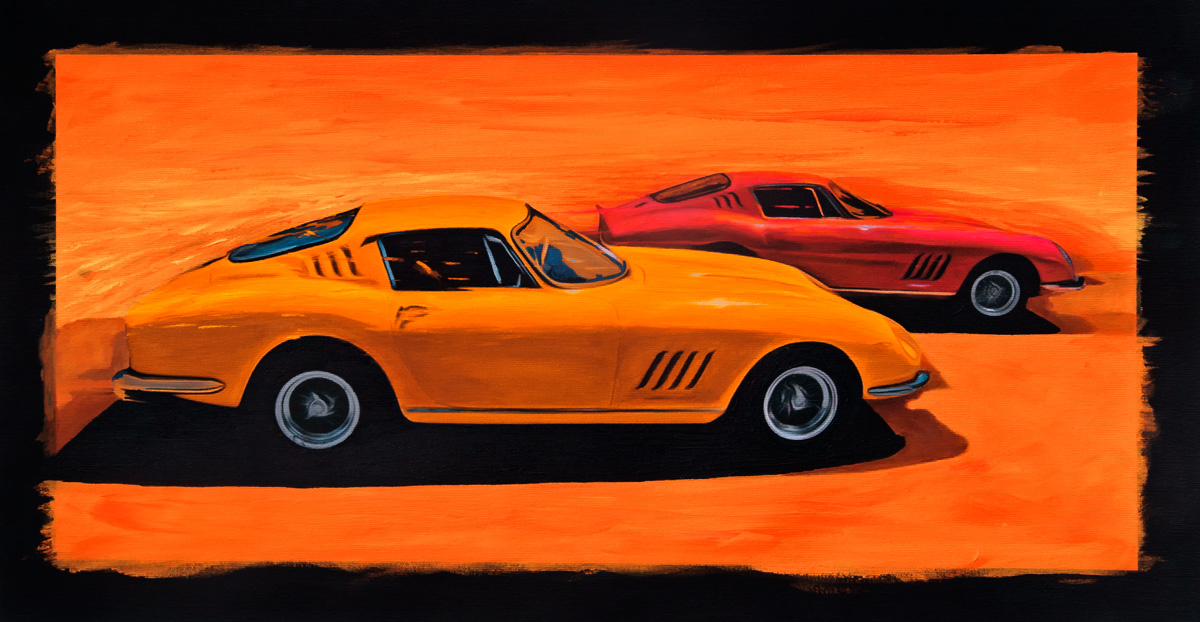 The Ferrari 275 GTB4. One of the most beautiful Ferrari Designs of all time. This is a very highly sought after Ferrari by collectors. Limited edition giclee prints to 300 on museum quality canvas, hand signed and number by the artist. 24"x 47"